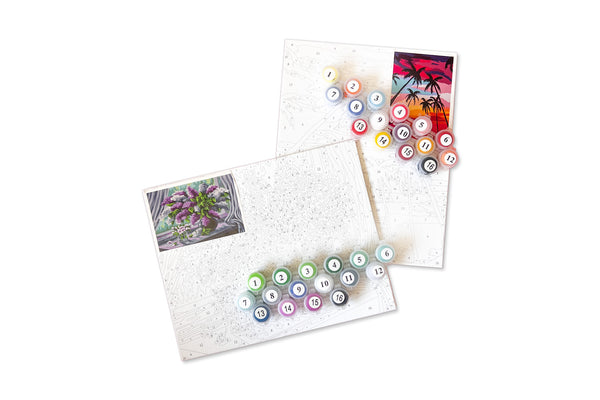 Whether you’re just learning how to paint or are an experienced painter, these paint by numbers kits will help you produce a truly remarkable painting! Designed to assist you in achieving a detailed painting in an accessible and approachable way, find your way toward piece of mind for yourself or for anyone in your life that could benefit from the relaxing act of painting by number. Each set includes a canvas panel, reference images, and a 16 color assortment of acrylic paints.