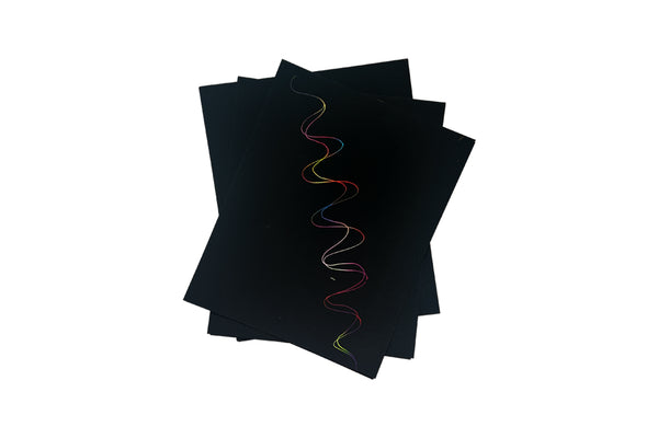 Tap into your creativity with these rainbow scratch cards. Scratch the black coating to reveal colorful rainbow patterns and create a variety of designs, doodles, patterns, pictures and more. Set includes 12 scratchcards, great for intro projects and doodling concepts. Perfect for practicing scratching drills and techniques.