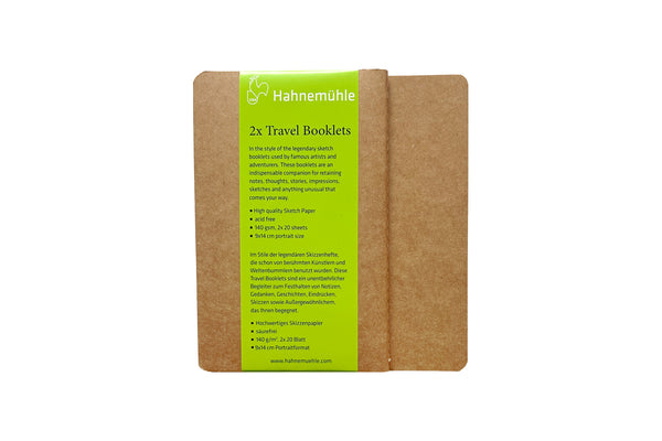 Travel Booklets are ideal for jotting down ideas or impressions while on the road. The flexible light-weight design fits easily into pockets and bags. Booklets feature a brown paper back cover and a pocket in the rear cover. The 140 gsm, acid-free and age-resistant natural white paper is perfect for long lasting pencil and ink drawings. Twenty sheets and 40 pages per booklet. Two booklets per pack.